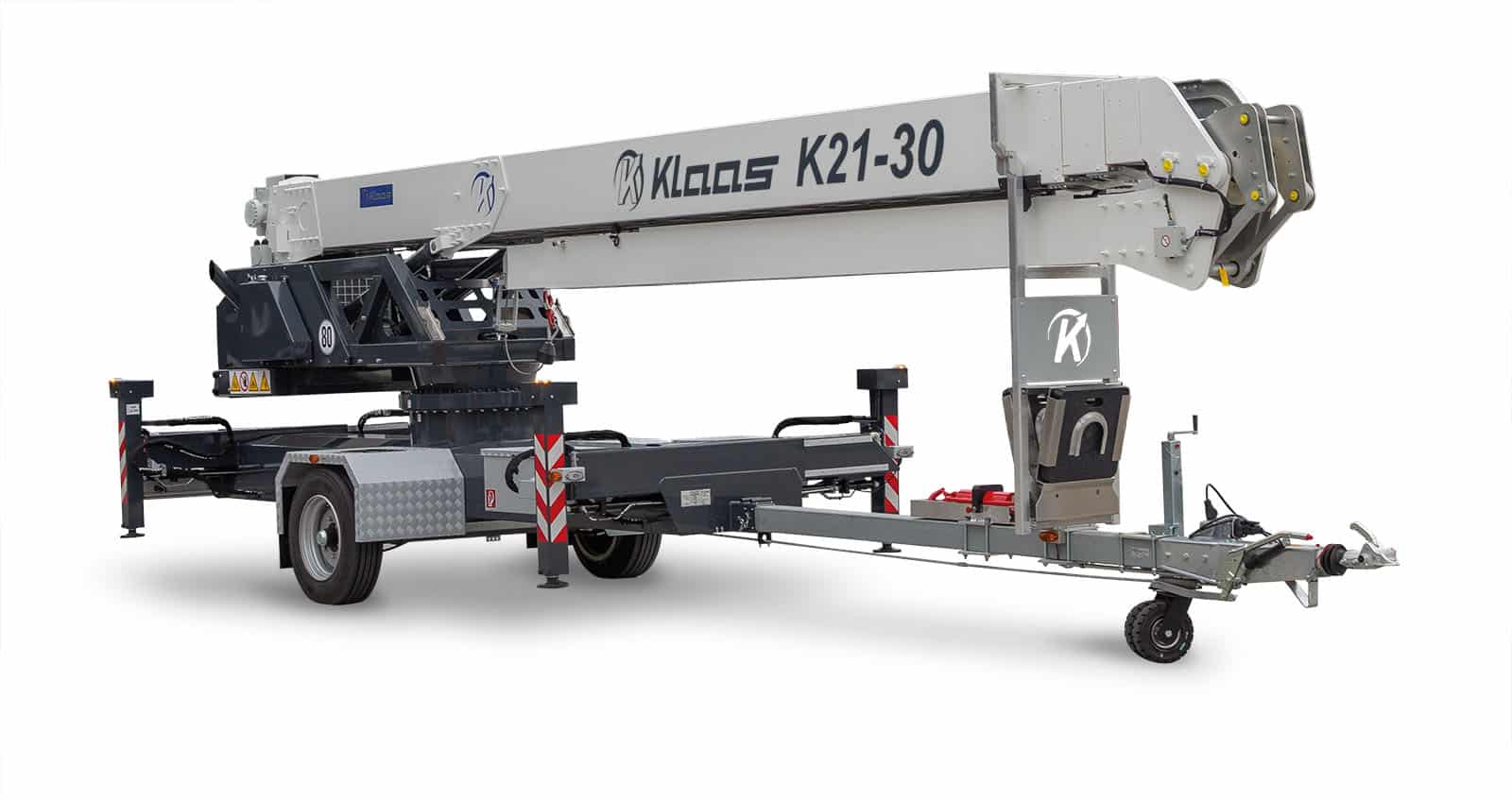 Der K21-30 ist trotz seines geringen Eigengewichts von 3,5 Tonnen ein leistungsstarker Allrounder. Sein enorm starkes Klappspitzgelenk ermöglicht Lastaufnahmen bis 1.500 kg, seine seitliche Reichweite mit einem Gewicht von 250 kg liegt bei beachtlichen 21 m. Durch den Einachsbetrieb punktet der Anhänger mit einer großen Wendigkeit, einer optimalen Gewichtsverteilung und mehr Bodenfreiheit. Mit Hilfe des Selbstfahrantriebs kann der K21-30 bequem auf der Baustelle rangiert werden. Dank einer einschiebbaren Deichsel lässt sich seine Gesamtlänge auf 7 m verkürzen, so dass der Kran auch im innerstädtischen Bereich gut aufgebaut werden kann.