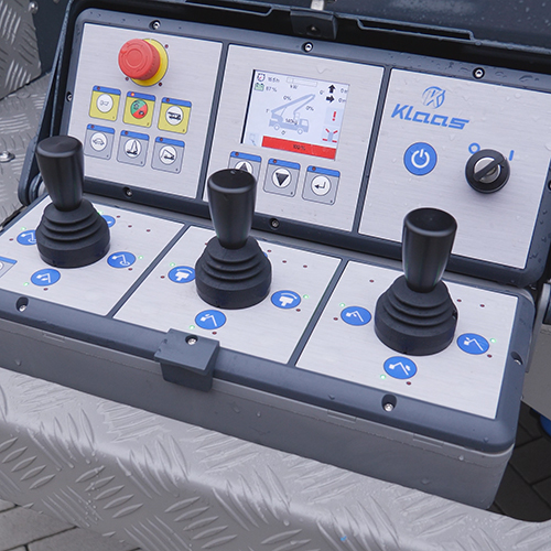 Einzigartig in dieser Gewichtsklasse ist die zweifach teleskopierbare Klappspitze mit drehbarem Arbeitskorb. Der Korb lässt sich beidseitig um 225° drehen und ermöglicht einen 360°-Arbeitsbereich. Dank des klappbaren Kopfstücks bleiben auch bei flachem Mastwinkel schwer zugängliche Bereiche und Gebäuderückseiten sicher erreichbar.